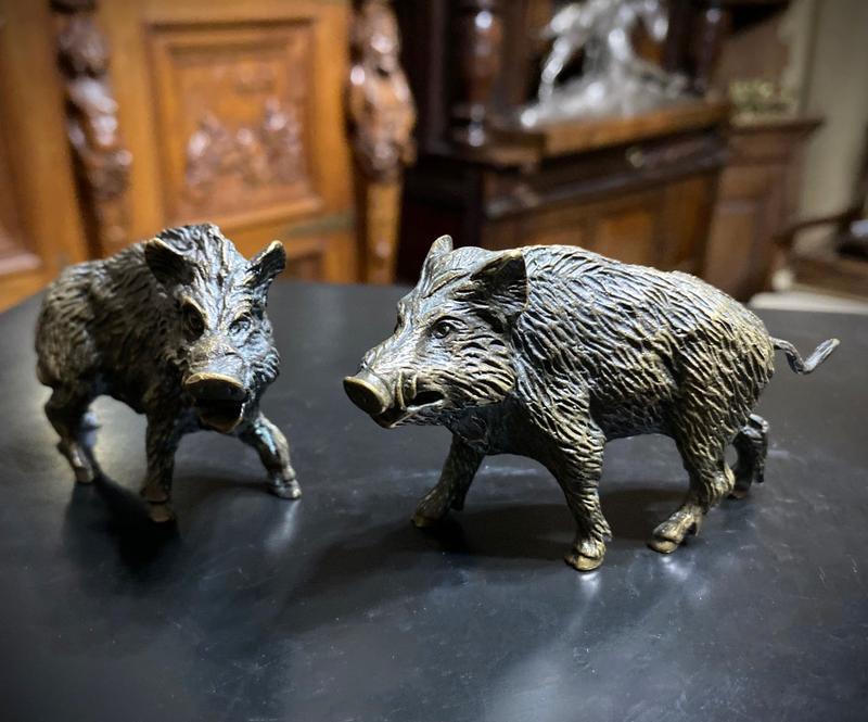 Тип аксесуара: Статуетки Пара кабанов,Венская бронза. Высота 9 и 6 см.