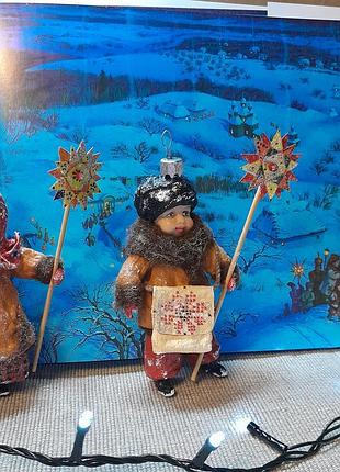 Виробник: Власне виробництво Тип аксесуара: Інший тип аксесуару Авторські ялинкові прикраси колядники звіздарі. Виготовлені з вати, шерсті та полімерної глини. Приблизно 13 см. Принесуть свято у Ваш дім) Ціна за 1 од. Нова радість стала, Яка не бувала, Над вертепом звізда ясна У весь світ засіяла. Де Христос родився, З Діви воплотився, Як чоловік пеленами Убого повився. Пастушки з ягнятком Перед тим дитятком На колінця припадають, Царя-Бога вихваляють. Ой Ти, Царю, Царю, Небесний Владарю, Даруй літа щасливії Сего дому господарю. Сего дому господарю І сій господині, Даруй літа щасливії Нашій славній Україні.