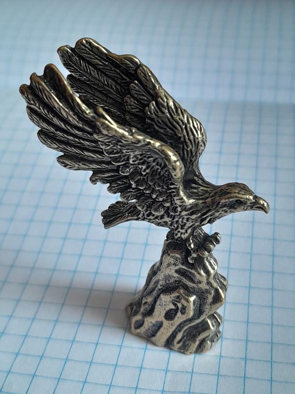 Орел - небольшое художественное изделие, которое поражает своей нежностью и внимательностью к деталям. Вес составляет 49.8 грамма,Высота 60мм ширина 40мм. Этот шедевр станет замечательным подарком для коллекционеров и любителей миниатюры, перенося вас в волшебный мир и эстетику искусства.