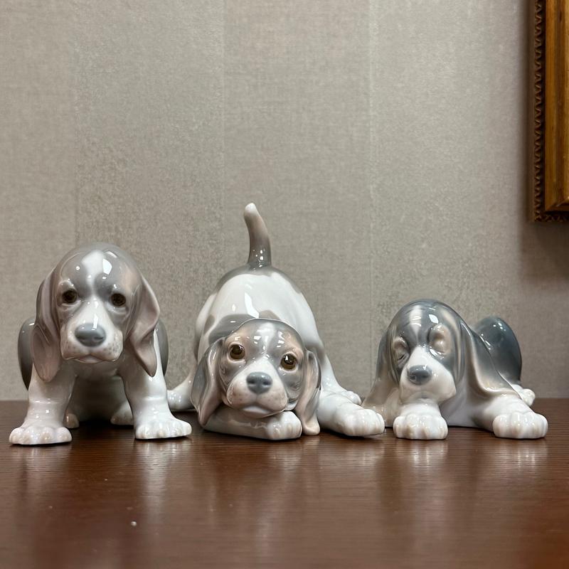Лот, 3 фарфоровых статуэтки lladro «щенки бигля».