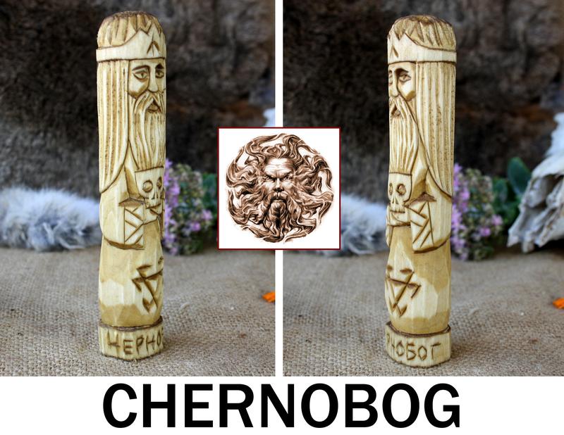 Чорнобо́г — у язичницькій міфології слов'ян персонаж, який приносить нещастя, творець усього злого та шкідливого. Гіпотетично — язичницький бог, хоча це оскаржується більшістю сучасних дослідників. Чорнобог міцно асоціюється з чорним кольором, ніччю. Зазвичай згадується у парі зі своїм суперником Білобогом. У християнську добу протистоянню Білобога та Чорнобога відповідає протистояння Бога та Сатани (чорта) Характеристика: Висота: 15 см Ширина: 3 см Глибина 3 см Матеріал: дерево, дуб Обробка: різьблення по дереву, шліфування Покриття: моріння, олією та воском Колір світло коричневий Дивіться також інші вироби