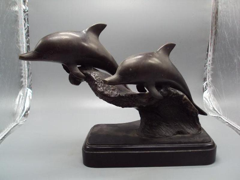 Фігура бронза статуетка Дельфіни на хвилі висота 27,5 см №13776