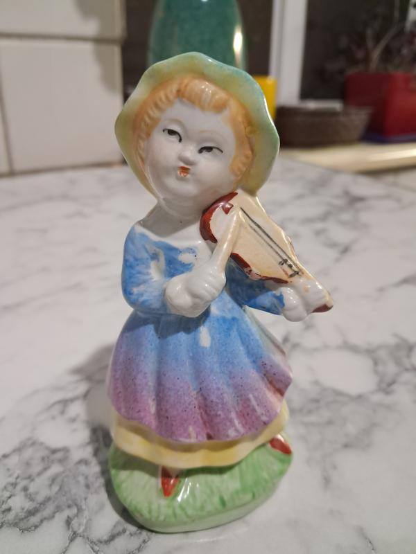 Керамічна статуетка-дівчинка музикант зі скрипкою, вис 13 см.