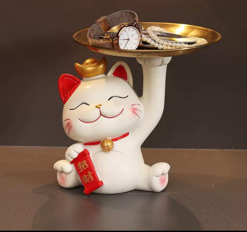 Функціональна статуетка східний кіт з підносом, підставка для монет та ключів