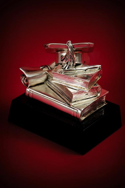 Срібна статуетка "Випускник Лауреат" ручної роботи, виготовлена з полімерної крихти вручну, покриття містить срібло. Виробник Італія, є упаковка, сертифікат якості. На сувенірі є місце для гравіювання.