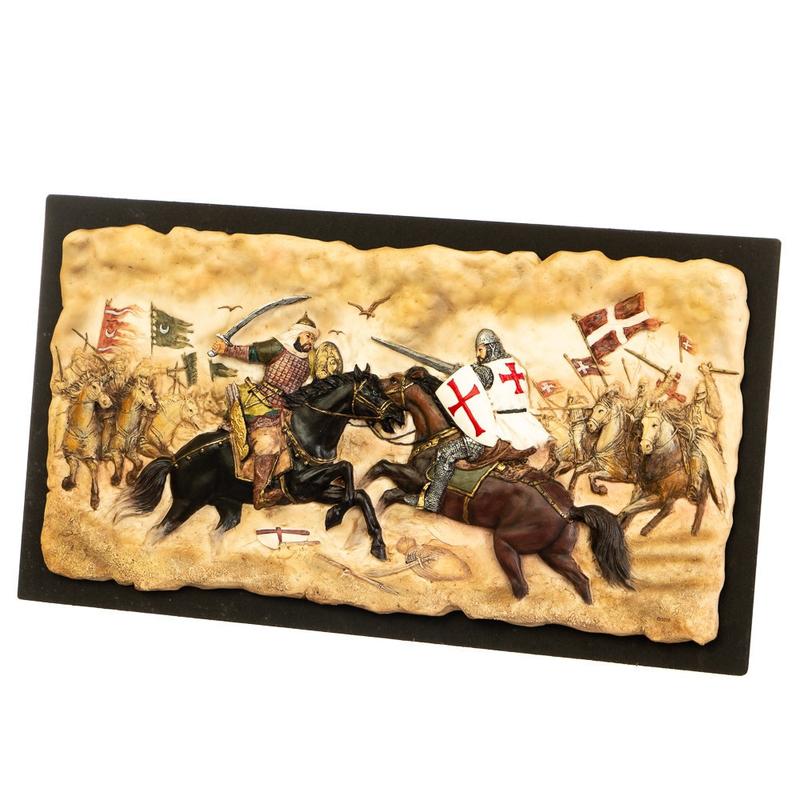 Панно картина настінне Veronese Перемога у битві за Ефес 42х23х2см 177472 Розмір 42х23 см. Виробник: Veronese (Італія) Матеріал: полістоун На панно Veronese "Битва при Ефесі" зображено сюжет битви між армією хрестоносців на чолі з королем Людовіком VII та турками-сельджуками Конійського султана у 1147 році. Французька армія успішно відбила атаку сельджуків із засідки у безпосередній близькості від міста Ефес. Це панно стане чудовим подарунком, що символізує перемогу.
