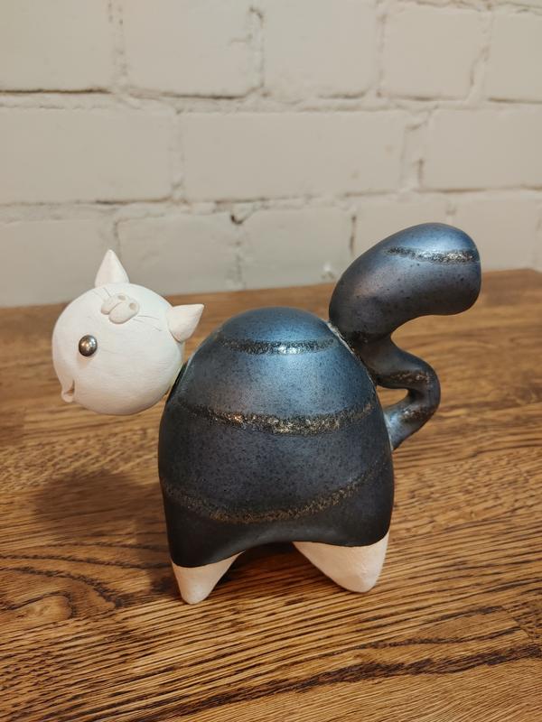 Черный керамический кот зигзаг, ручная работа. Размеры: 15х 13 х 9 см