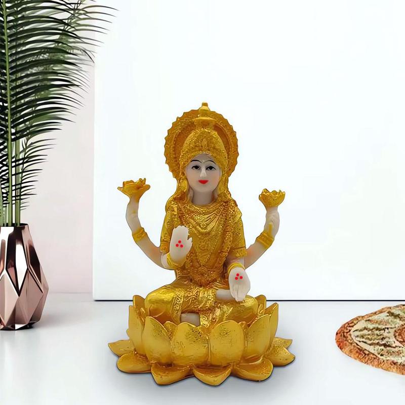 Опис: Статуетка богині Лакшмі символізує процвітання, гармонію і духовне благополуччя. Лакшмі -- дружина Вішну, покровителька багатства, удачі і краси. Розміщена в будинку або офісі, вона допомагає привернути достаток, успіх і позитивну енергію. Особливості: - Зображує богиню Лакшмі, що сидить на лотосі -- символі чистоти і духовного зростання. - Традиційний індійський стиль виконання. - Підходить для прикраси інтер'єру, медитацій і ритуалів залучення достатку. Матеріали та характеристики: - Матеріал: полістоун. - Колір: золотий з елементами розпису - Розмір: 10,5 см × 7,5 см - Країна виробництва: Індія Рекомендації щодо використання: Розмістіть статуетку Лакшмі в східній або південно-східній частині будинку -- в зоні багатства за фен-шуй. Для посилення ефекту можна ставити поруч монетки, свічки або квіти.