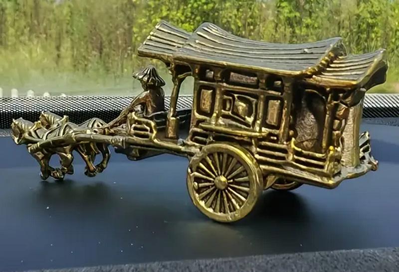 Велика фігурка статуетка латунна метал латунь карета коні-потяг коня
