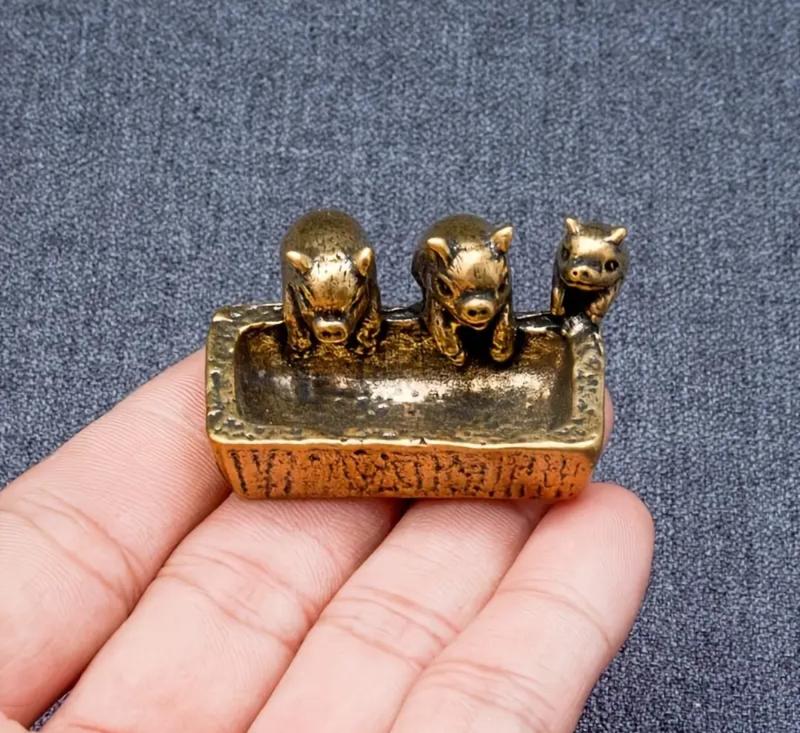 «Поросята біля корита» з латуні. Гарна деталізація, розміри: ширина 4,80 см, висота 2,90 см, глибина 3,50 см, вага 72.00 грм.