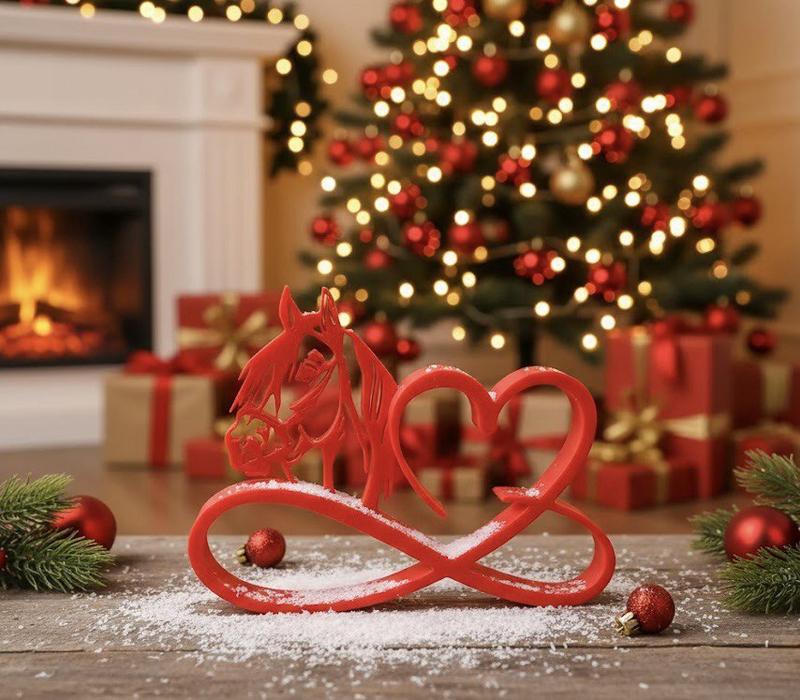 Ця статуетка є втіленням ніжності та відданості. Поєднання благородного силуету коня та символу серця робить цей декор ідеальним подарунком для близької людини або вишуканою прикрасою для дому. Любов, грація та символізм в одному виробі! ❤️🐎 Ця авторська статуетка поєднує в собі два потужних образи: коня — як символ свободи та сили, і серця — як знаку щирих почуттів. Завдяки плавному переплетенню ліній, силует голови коня органічно переходить у контур серця, створюючи єдину гармонійну композицію. Особливо актуальним цей декор стає напередодні 2026 року, адже він презентує символ року у найбільш доброзичливому та душевному світлі. Чому варто обрати цю статуетку? 🎨 Витончений дизайн: Стиль контурного арту дозволяє фігурці виглядати легкою та сучасною, підкреслюючи красу простору навколо. ❤️ Глибокий сенс: Ідеальний подарунок на день народження, річницю або як знак уваги людині, яка захоплюється кіньми чи цінує оригінальний декор. 🔥 Яскравий акцент: Насичений червоний колір привертає погляд і додає тепла вашому інтер'єру, особливо ефектно виглядаючи на фоні святкових вогників. 🌿 Сучасне виконання: Статуетка створена методом 3D-друку з екологічного PLA пластику. Вона міцна, легка та має приємну на дотик фактуру. 📏 Оптимальний розмір: Ширина 19 см робить її помітною на полиці, каміні або робочому столі.