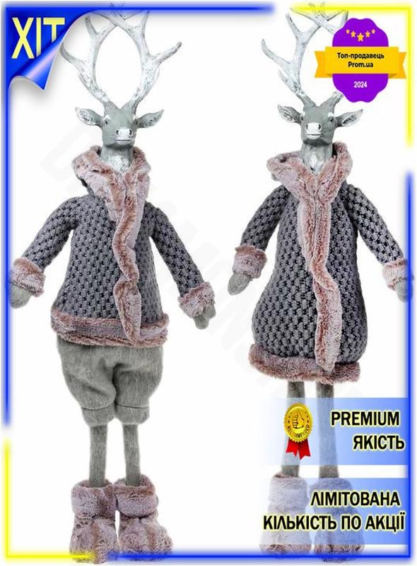Dm декоративна фігура олень специфікація 2.2 у сірому пальто 93см полістоун для інтер'єру...