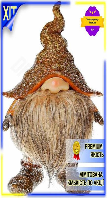 Dm декоративна фігурка гнома специфікація 2.2 в коричневому полістоуні 23 см для інтер'єру...