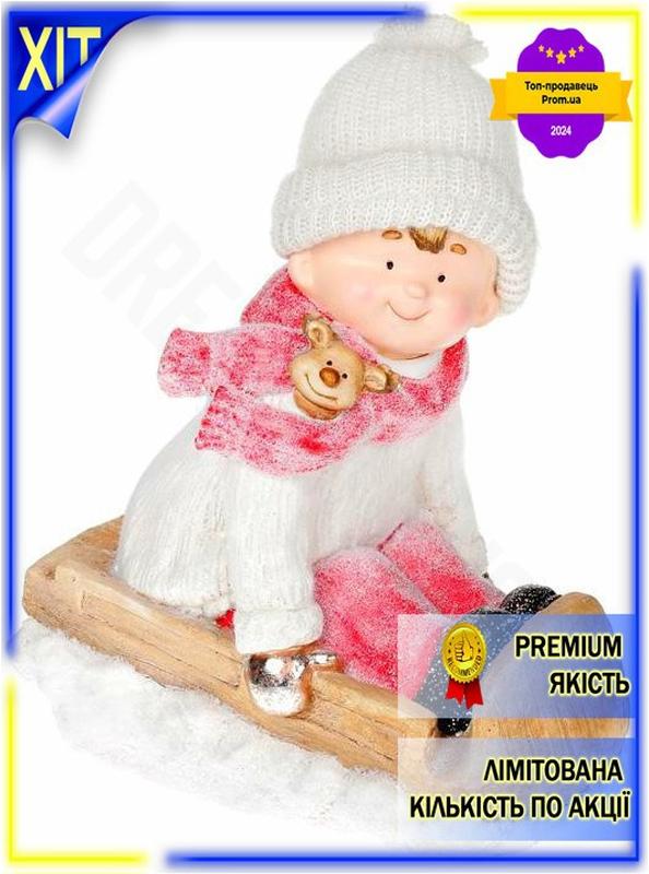 Dm фігура керамічна хлопчик специфікація 2.2 у білому на санках 41см зимовий декор для дом...