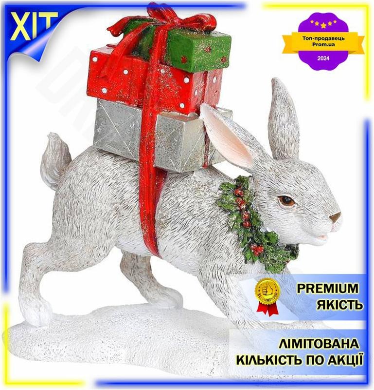 Dm декоративная статуэтка серый спецификация 2.2 заяц с подарками animal world полистоун д...
