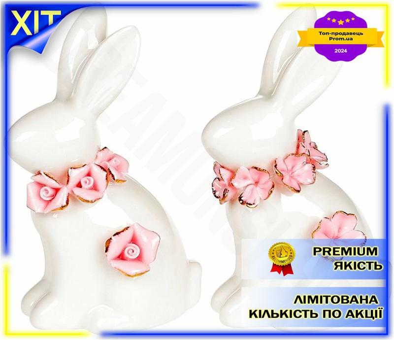 Dm порцелянова фігурка зайчик специфікація 2.2 у квітковому намисто білий глянець декорати...