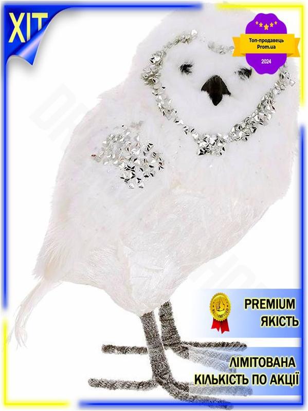 Dm декоративна фігура сова специфікація 2.2 white world біла зі сріблом для інтер'єру прик...