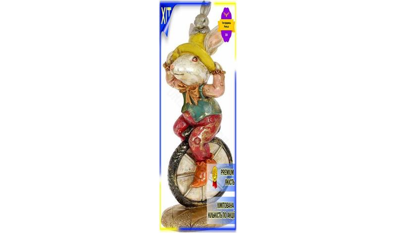 Dm статуетка декоративна кролик специфікація 2.2 на велосипеді 50см полістоун для інтер'єр...