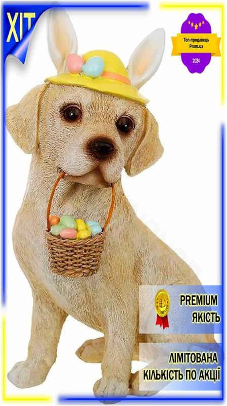 Dm декоративная статуэтка собака спецификация 2.2 в шляпе с корзинкой 21см полистоун для п...