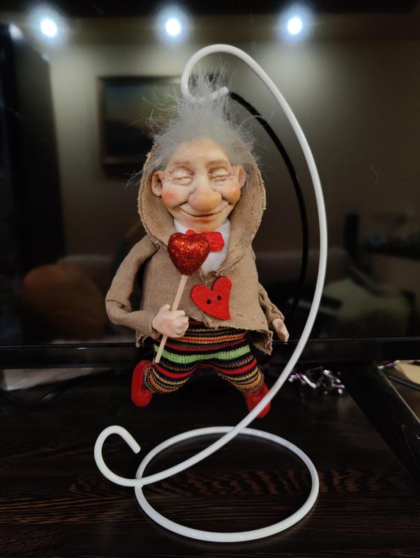 в наявності Висота разом з підставкою 23см. Оселившись у вашому будинку буде оберігати його і створювати гарний настрій. Дивлячись на його обличчя мимоволі виникає посмішка і піднімається настрій. Одяг не знімається. Руки та ноги рухливі. Пересилаю післяплатою тільки з частковою передоплатою.