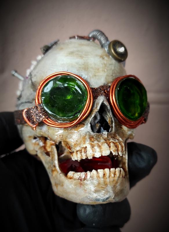 Із серіх черепів з кристалами. Череп з елементами стімпанку. Створений для декору. Гарно доповнить фотозону.