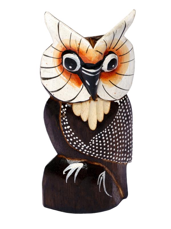 Сова - символ мудрості і знання, проникливості, нудьги і пророчого дару. Сова коричнево- оранжева розписна, мартеріал - дерево бальса, кропис, ручна робота. Помаранчевий Розмер: висота 15см, країна виробник - Індонезія. За запитом висилаємо фото і відео "наживо" Надсилання в день замовлення!