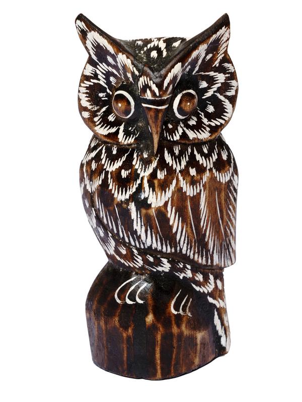 Сова - символ мудрості і пізнання,проникливості,чуйності та пророчого дару. Матеріал - дерево бальса,ручна робота.Колір -коричневий,біла розпис,нанесена в ручну.Розмір:висота 18см. Країна виробник - Індонезія. За запитом висилаємо фото і відео "в живу". Відправка в день замовлення!