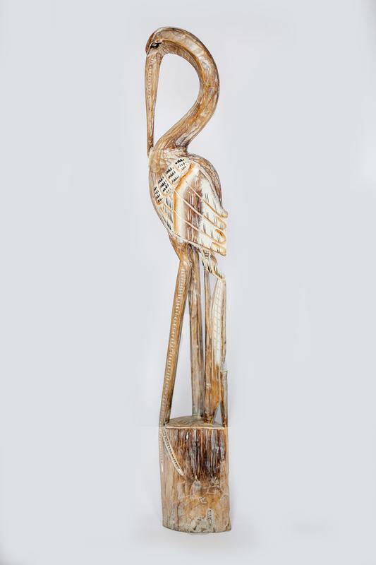 Дерев'яна статуетка чапля колір бежевий вибілена,висота 80см