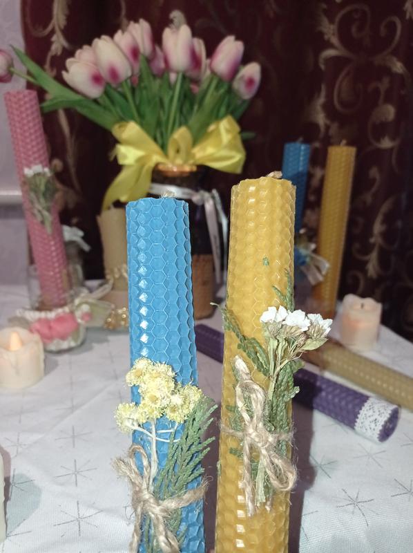 Натуральні свічки з вощини. доповнять будь-який інтер'єр, подарують легкий аромат і створять затишок в темну пору доби Додавання ефірних масел та травок. ціна від 30-50грн.в залежності від наповнювача час горіння 2 -3 години в залежності від розміру