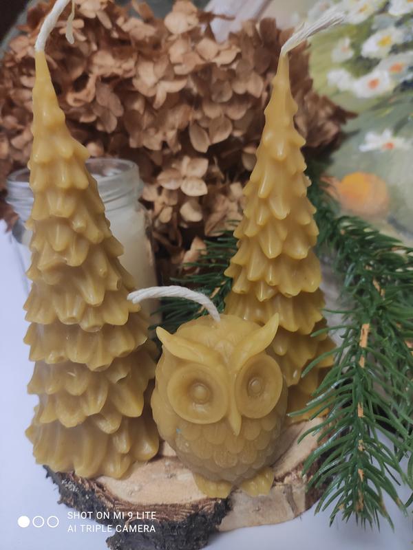 Неймовірно гарна свічка "ялинка" з бджолиного воску! Має приємний медовий аромат!! Вага- 70 г.,висота-10 см!!!! Час горіння 4-50 год.Чудово підійде як на подарунок, так і для створення домашнього затишку!Можливий підбір наборів!!!