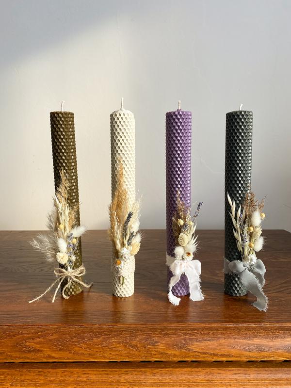 Стретэнская свеча из вощеника. Украшена сухоцветом. Высота 26 см
