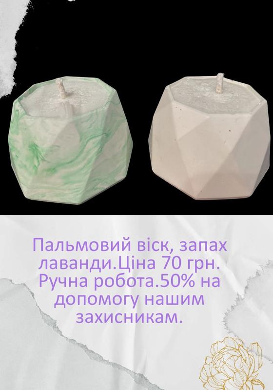 Всех приветствую. начала заниматься изготовлением свечей. Все из пальмового воска, запах лаванды. Цена от 50 грн. Очень красивый, нежный и длительный аромат. Сделайте себе или знакомым красивую нежную атмосферу. Также подписись на наш инсталграм ****************. Половина средств идет на помощь нашим защитникам. С верой в победу. Большое вам спасибо)