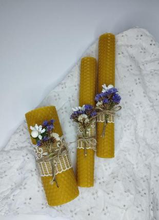 Набір з трьох свічок🕯️натуральна вощина Тонкі свічки 20см Товста свічка 13см Сухоцвіти зберігають свій вигляд тривалий час, якщо не ставити їх під прямими сонячними променями🌞