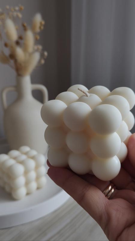 Якщо ви шукаєте оригінальну свічку для свого дому, то можливо, свічка bubble - саме те, що ви шукаєте. ✨ Ця свічка має незвичайний дизайн, що нагадує мильні бульбашки. Отже, якщо ви хочете створити особливу атмосферу у своєму домі, то свічка bubble - це чудовий вибір. Розмір великий Bubble ✨ 6х6 см; Вага: 140 г. Вартість: 265 грн(*з ароматом+20 грн )💰 Розмір маленький bubble ✨ 3,5x3,5 см; Вага: 40 г. Вартість: 110 грн(*з ароматом)💰