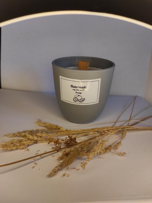 Соєва свічка з ароматом "Orange" ✅Сертифікований соєвий віск зі США ✅Дерев'яний гніт ✅Об'єм 285мл ✅40 годин горіння