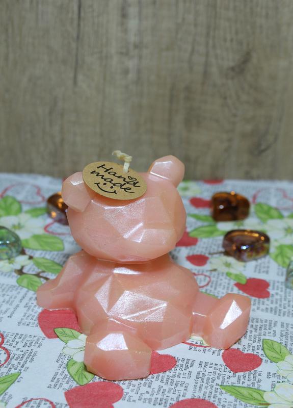 Свічка Ведмедик ручної роботи - чудовий символічний подарунок собі, коханій людині, колегам, знайомим або близьким Вам людям. Виготовлена із харчового парафіну найвищого ступеня очищення, марки П-2. Із додаванням стеаріну, для подовженого горіння. Являється екологічно чистим продуктом. Висота свічки 8 см, діаметр 10 см, вага 160 грам. Запаковується в подарункову коробку. Ця свічка підійде як для декору вашої оселі так і стане чудовим подарунком.