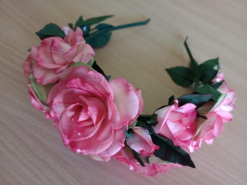 Обруч ручної роботи виготовлений із фоамірана. Кожна пелюстка та листочок вирізані, оброблені та тоновані олійною пастеллю вручну. Основа - металевий обруч. Додаткові характеристики: Призначення: Для жінок