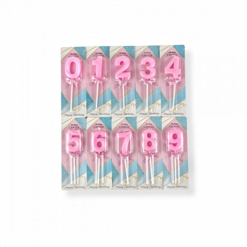 Свеча цифра розовая от 0 до 9 5см 3-4