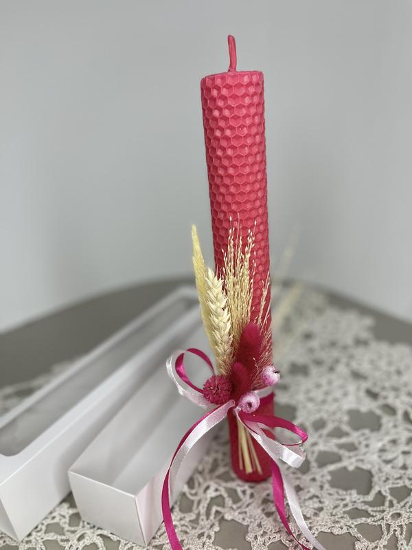 Свеча ручной работы в подарочной упаковке.свеча из вощины. свеча с декором.