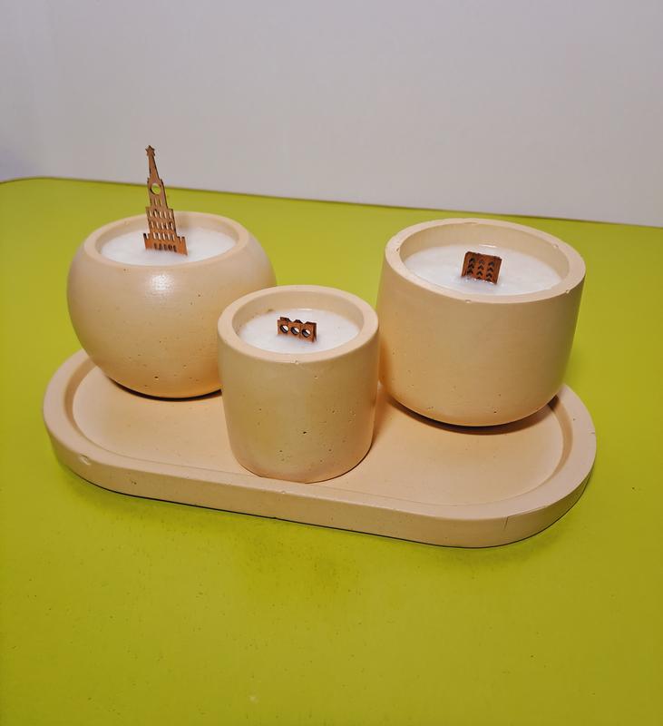 Набір соєвих аромасвічок в гіпсових кашпо на підставці з дерев'яними ґнотами "Романтика" Чудовий подарунок на будь-яке свято! Аромат - Бавовна (та багато інших на Ваш смак) Об'єм трьох свічок - 350 грамів воску Час горіння ~ 60 годин (по черзі) Час горіння ~ 30 годин (разом) Контрактне виробництво від 5 наборів. Ціна залежить від кількості наборів!