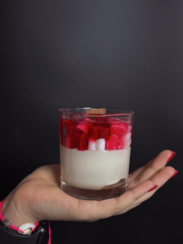 свічка heart поєднання натурального соєвого та гелевого восків в найромантичнішій комбінації ❤️ сердечка з соєвого воску з додаванням гіпоалергенного фарбника ❌теплий віск саме цієї свічки не рекомендовано використовувати для зволоження шкіри❌ Обрати аромат можна в закріплених сторіз "для свічок" Час горіння - близько 40 годин Склад - соєвий віск, кокосова олія, вітамін Е, олія жожоба, харчовий шиммер (при горінні додає неймовірний блиск), гелевий віск, деревʼяний гніт