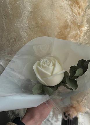 Троянда із натурального соєвого воску, з додаванням арома олії. Троянда свічка — це елегантний декоративний елемент, який поєднує в собі красу квітки троянди і функціональність свічки. Виготовлена з воску, вона має форму реалістичної квітки, яка при запаленні створює тепле та романтичне світло. Ідеально підходить для створення затишної атмосфери у будь-якому інтер’єрі.