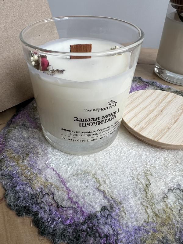 Свічка ПЕРСОНАЛІЗОВАНА з таємним написом — це не просто аромат для затишку, а спосіб сказати найважливіші слова. Усередині заховано напис, який проявиться під час горіння — ніжне зізнання, тепле побажання чи особливе нагадування. ✨ Оберіть аромат зі спеціальної карти ароматів (солодкі, квіткові, деревні чи кавові ноти). ✨ Доступна тара на вибір: скляна, металева чи дерев’яна. ✨ Кожна свічка виготовлена вручну з натурального соєвого воску. 💡 Також доступні менші ємкості свічок. Для замовлень від 10 шт. (оптова кількість) діє спеціальна договірна ціна — наприклад, для подарунків гостям на свято, корпоративів чи весільних сюрпризів. Щоб уточнити деталі — пишіть у чат. Це ідеальний подарунок для коханих, родини чи друзів, адже він приховує в собі головне — емоцію та слова, які гріють серце. 💕 Для коханої людини: "Я тебе кохаю" "Ти — моє натхнення" "Ти мій дім" "З тобою назавжди" 👩👩👧 Для свекрухи / тещі: "Дякую за вашу любов" "Ви для мене друга мама" "Ваша підтримка — безцінна" 👭 Для подруги: "Разом ми сила" "Дружба — це скарб" 👩 Для доньки: "Ти моє найбільше щастя" "Завжди вір у себе" "Мріючи — ти зможеш все" Також допоможемо підібрати напис індивідуально.