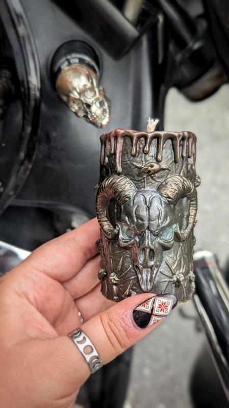 Череп барана з рогами виглядає, ніби вартовик із давніх легенд, готовий захистити твій дім від невідомого -- запали його для сміливості! Його готичний стиль додасть інтер'єру дикого шарму, а деталі нагадують про силу природи. Ця свічка ідеально підійде для тих, хто любить незвичайні акценти в оселі. Нехай її полум'я зігріє твої вечори з ноткою містики. Дозволь їй стати частиною твоєї історії!