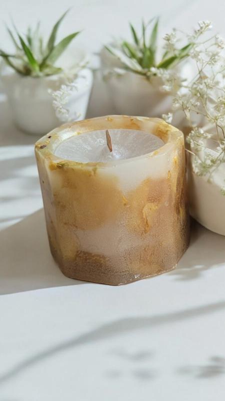 Декоративна свічка "жовта гармонія" - 5*5,5 см, 15 годин горіння, з ароматом цитрус