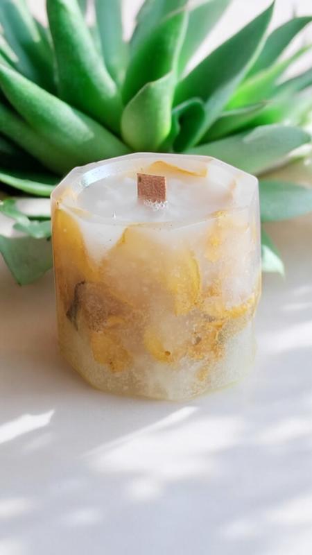 Декоративна свічка "жовта гармонія" - 5*5,5 см, 15 годин горіння, з ароматом кориця