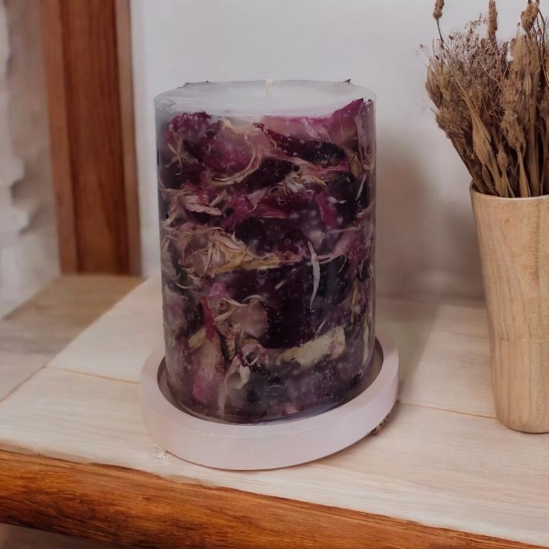 Свеча-цилиндр с пионами – 35 часов горения, с ароматом бабл-гам