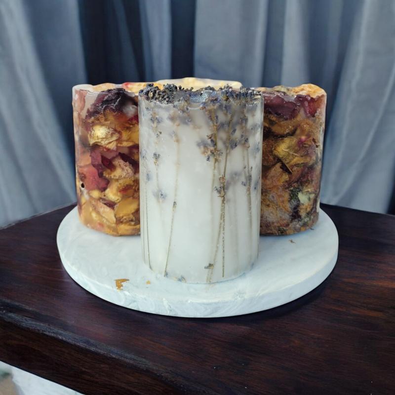 Колекція свічок "естетика природи" на підставці, з ароматом лаванда