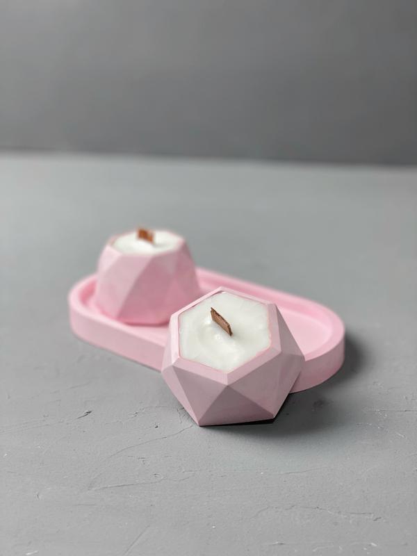 Набір соєвих свічок в гіпсових кашпо mini на підставці без аромату