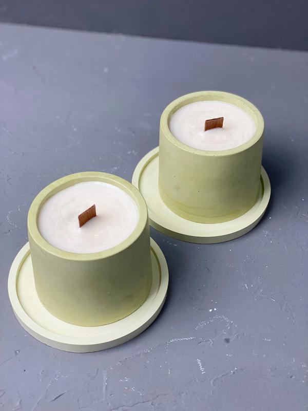 Набір ароматичних соєвих свічок в гіпсових кашпо minimal на підставках 2шт tropical forest